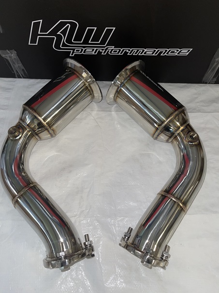 Dieses Downpipe-Kit für 4.0T Catless Tuning Downpipe wurde für den leistungsgesteigerten Einsatz entwickelt und ersetzt die Serien-Abgaskomponenten durch strömungsoptimierte Edelstahl-Downpipes. Durch den reduzierten Abgasgegendruck verbessert sich das Ansprechverhalten des Turboladers und es stehen mehr Leistungsreserven zur Verfügung.