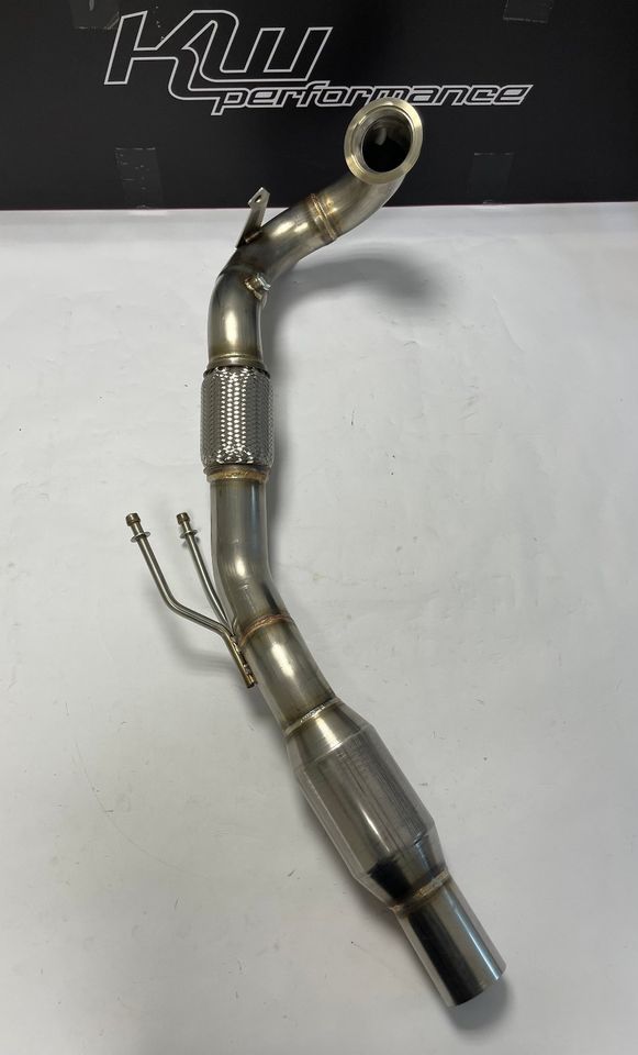 Dieses Downpipe-Kit für 76mm Performance Tuning Downpipe 3″ mit Catles ( Leerkat ) 2.0TFSI TSI VW Skoda Seat Golf7 wurde für den leistungsgesteigerten Einsatz entwickelt und ersetzt die Serien-Abgaskomponenten durch strömungsoptimierte Edelstahl-Downpipes. Durch den reduzierten Abgasgegendruck verbessert sich das Ansprechverhalten des Turboladers und es stehen mehr Leistungsreserven zur Verfügung.