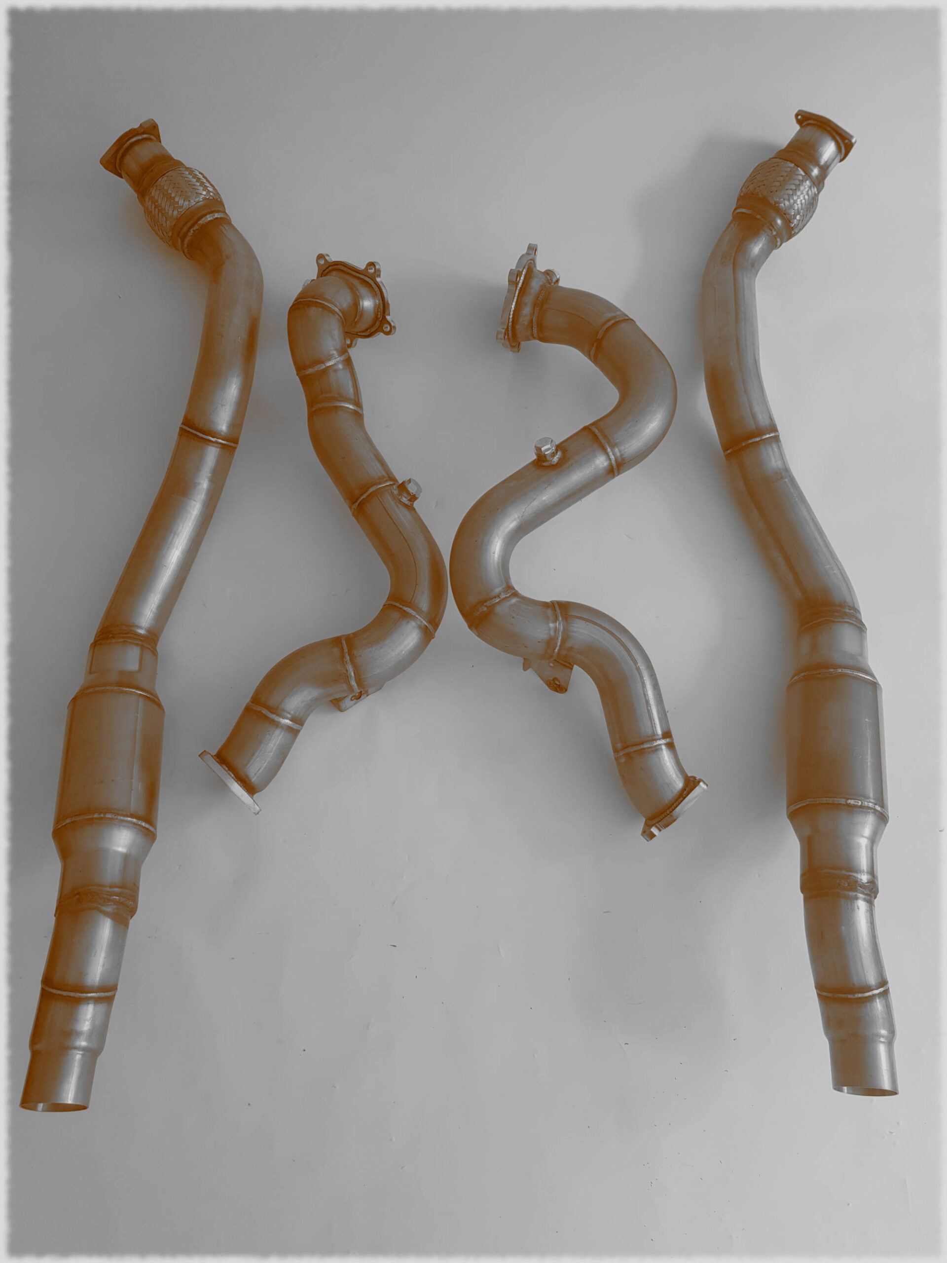 Dieses Downpipe-Kit für Audi RS7 4.0TFSI Tuning Downpipes + VSD Ersatzrohr mit Leer Kat wurde für den leistungsgesteigerten Einsatz entwickelt und ersetzt die Serien-Abgaskomponenten durch strömungsoptimierte Edelstahl-Downpipes. Durch den reduzierten Abgasgegendruck verbessert sich das Ansprechverhalten des Turboladers und es stehen mehr Leistungsreserven zur Verfügung.