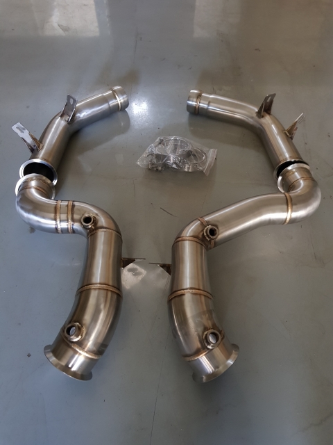 Dieses Downpipe-Kit für Mercedes C63 AMG W205 Downpipe M177 4.0 Biturbo wurde für den leistungsgesteigerten Einsatz entwickelt und ersetzt die Serien-Abgaskomponenten durch strömungsoptimierte Edelstahl-Downpipes. Durch den reduzierten Abgasgegendruck verbessert sich das Ansprechverhalten des Turboladers und es stehen mehr Leistungsreserven zur Verfügung.